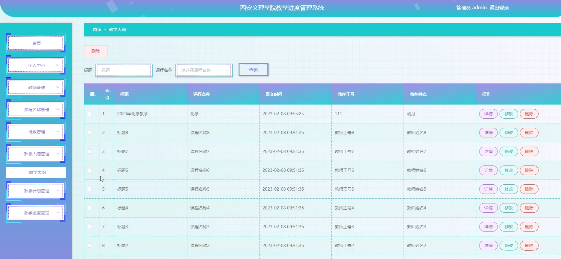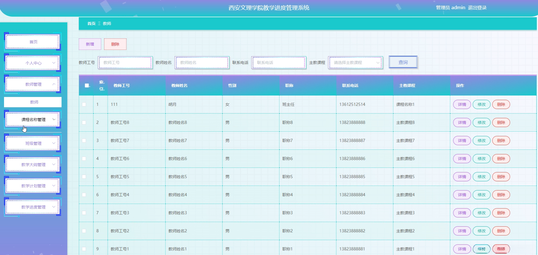 django西安文理学院教学进度管理系统(源码+mysql+论文)