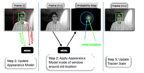 MIL是一篇关于tracking中基于tracking-by-detection框架的文章,而且关注的是好的正样本的问题。当然之前那篇里面的struck也是关注这个问题。作者首先发现,利用当前帧的state获得的正负样本很容易混淆分类器本身。因为tracker本身稍微的误差可能将训练样本的label标错,那么训练出来的分类器也就不好了,于是对下一帧的预测很可能出问题。于是我们还是得获得好的正负样本来update appearance model啊。