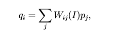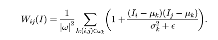 其中I是引导图像(guided Image),P是输入的待滤波图像,Q是滤波后的输出图像,W是根据引导图I确定的权重值。权重值W可以用下式表示(原文献有详细推导):