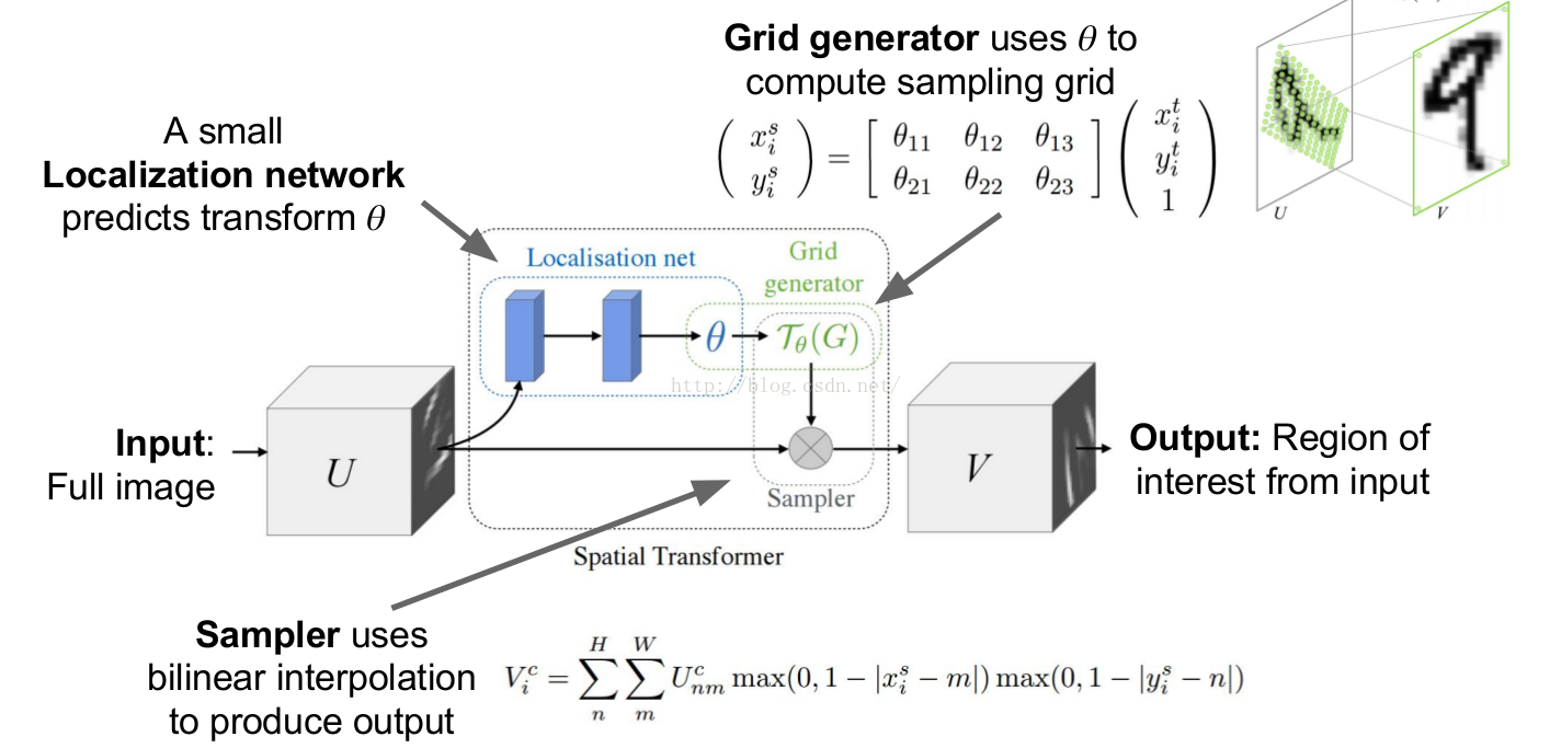 It aims to introduce a spatial transformer module that intelligently selects key features (attention) and applies scaling; cropping; rotation; non-rigid transformations to them.