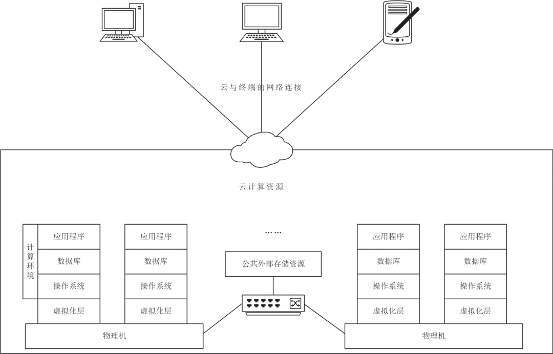 云无论提供何种服务,在为用户提供这些服务后,在用户实际使用这些算力的过程中(即当这些算力与用户的终端设备相互作用时),它们就共同构成了一个动态的信息系统(如图1所示)。对于这个信息系统而言(即该系统中的安全等级),其确定方法可参考GB/T 22240—2008的相关规定。