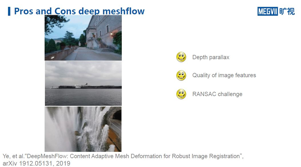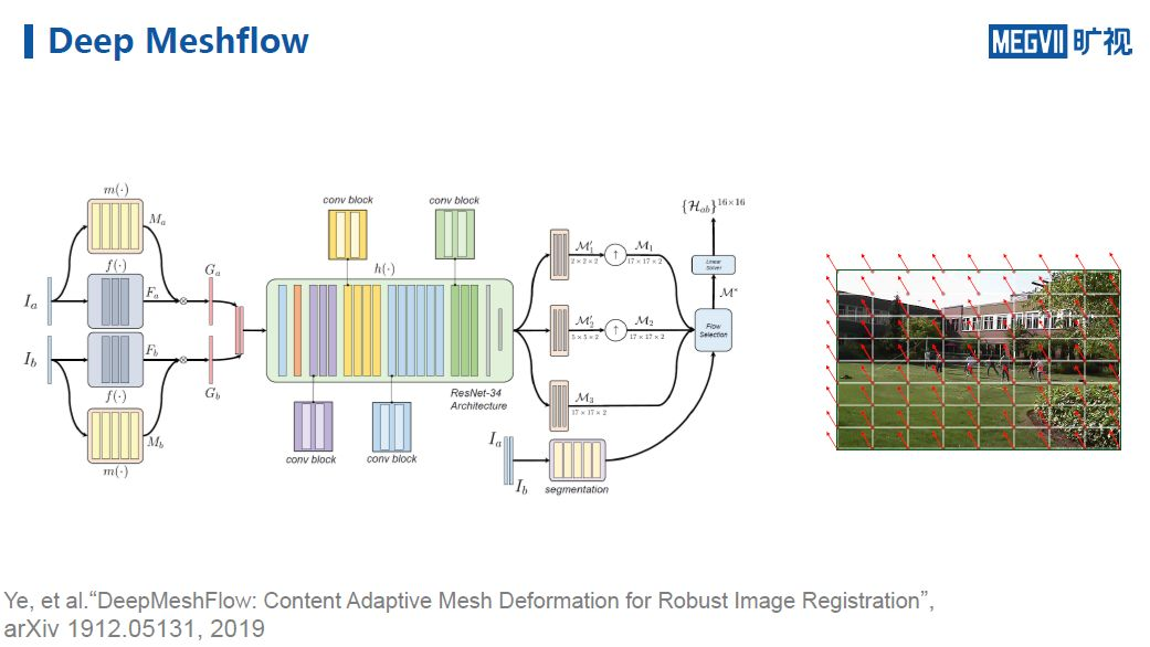 为了解决深度视差带来的挑战,下面介绍同样是我们团队今年提出的DeepMeshFlow方法“DeepMeshFlow: Content Adaptive Mesh Deformation for Robust Image Registration” 。