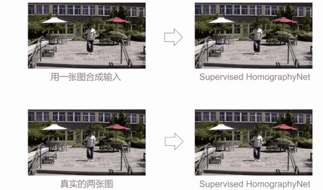 然而这种监督式的Deep Homography也存在较严重的问题,如下图所示: