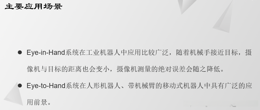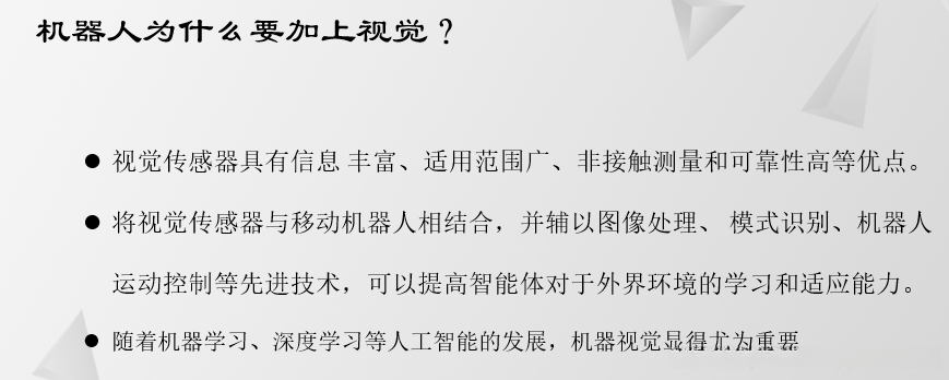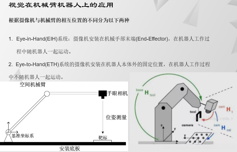概念: 将移动机器人自动控制技术与计算机视觉算法相结合,形成了移动机器人的视觉控制技术,该技术称为移动机器人的 视觉伺服 。这项技术通过视觉传 感器来感知外界环境,并通过对视觉信号的分析进行自主决策。