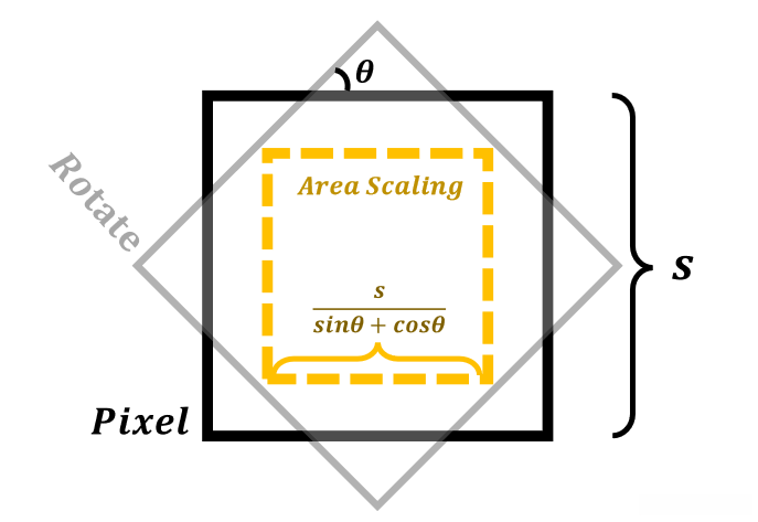 Area scaling when rotating pixels.