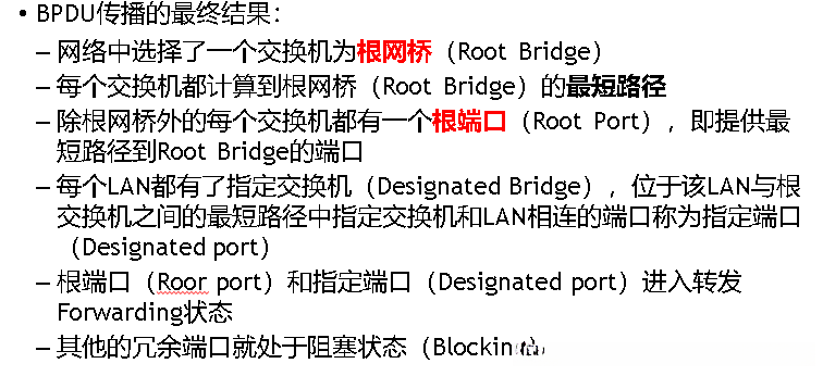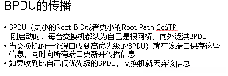 •交换设备间定期地传递桥接协议数据单元(Bridge Protocol Data Unit ,BPDU),以执行STP功能