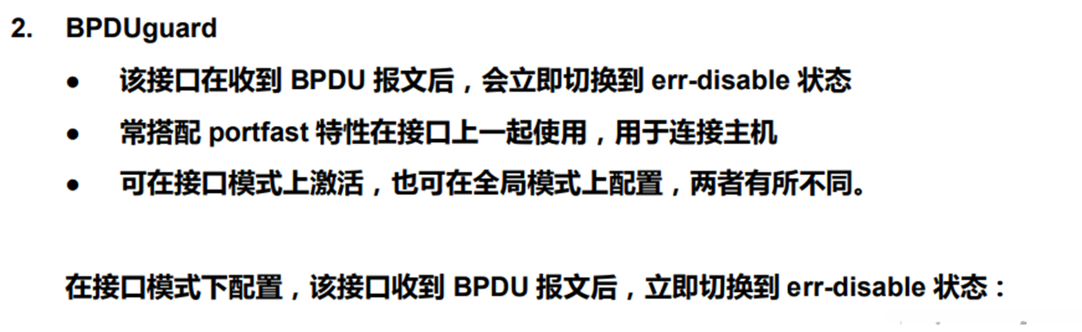 [Switch] stp bpdu-protection //收到bpdu报文会自动 shutdown