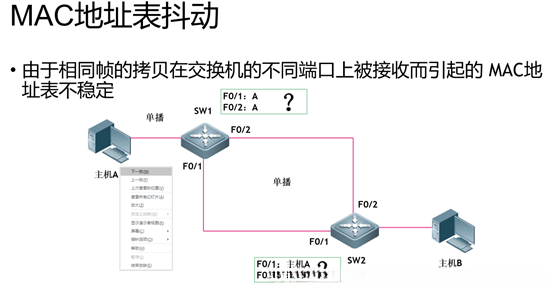 当交换机内部发生环路时,同一个MAC地址不断录入到各个端口上;这会导致CAM地址数据库频繁波动;从而造成通信链路中断.