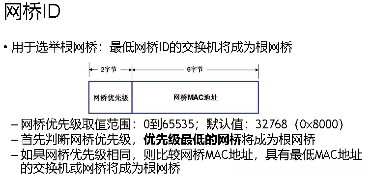 在交换机桥接模式下,默认采用桥接ID计算方式(包含16位优先级字段与48位MAC地址字段),并选择较小的桥接ID值作为路径选择依据;当桥接ID的16位优先级字段值相同时,默认情况下将该字段设置为32768;如果用户有特殊需求,则可以根据实际网络环境配置相应的参数。