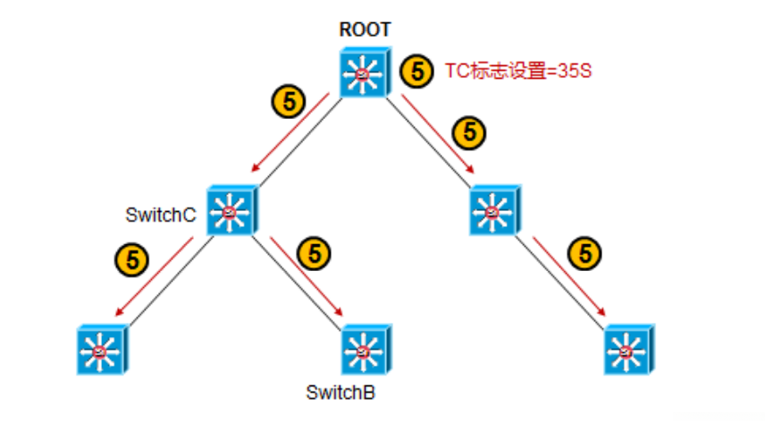通过所有接口广播信息的Sw1节点,在接收到这一消息后会立即响应,并持续不断地传播下去。当这一消息被接收时,节点数量将迅速增加到指数级数。