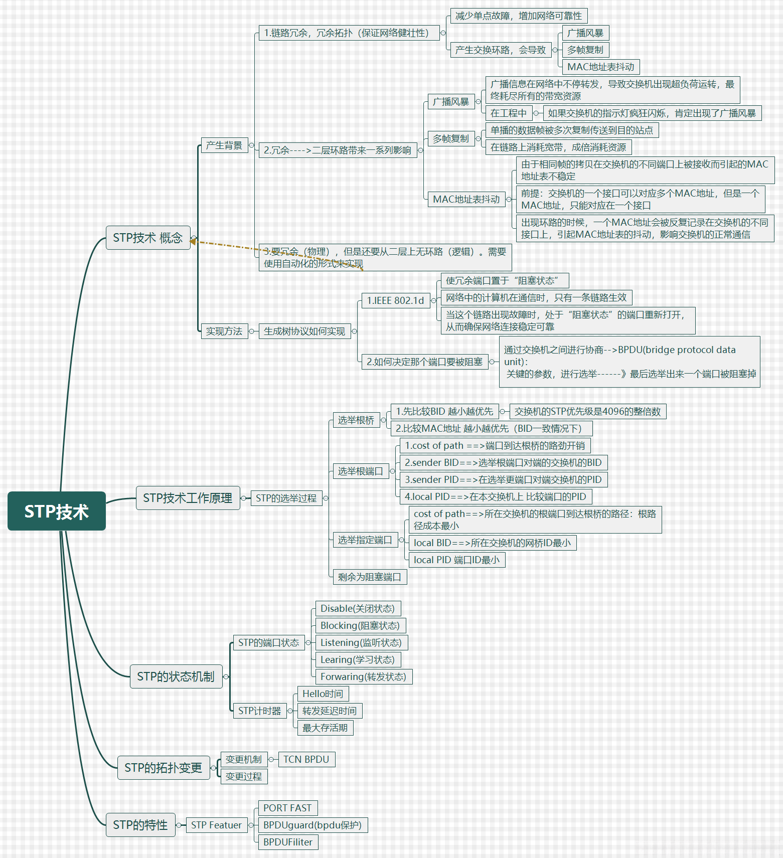 下面是我总结出来的一个关于STP技术相关知识的思维导图: