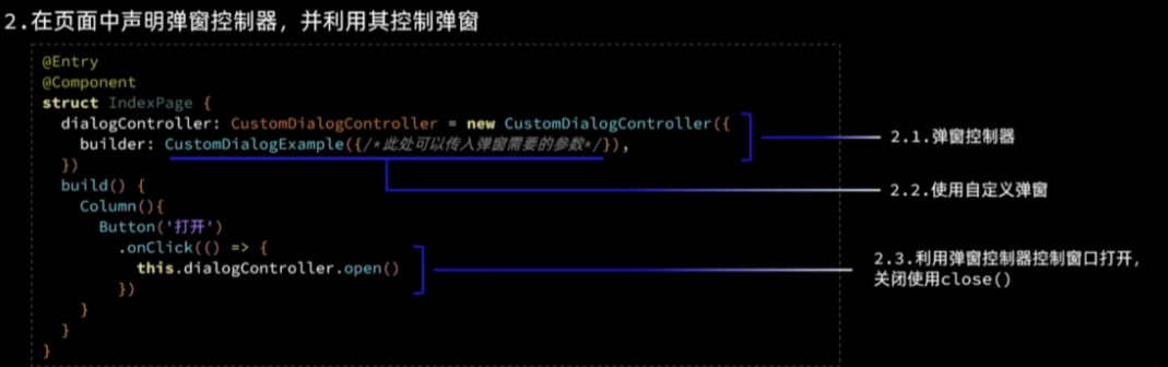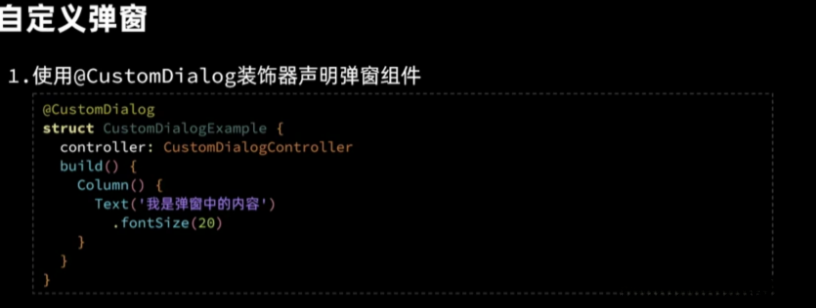 1.使用@CustomDialog装饰器声明弹窗组件;