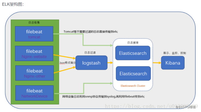 ELK是三个开源工具组成,Elasticsearch、Logstash、Kibana ,这三者的关系按照下图所示