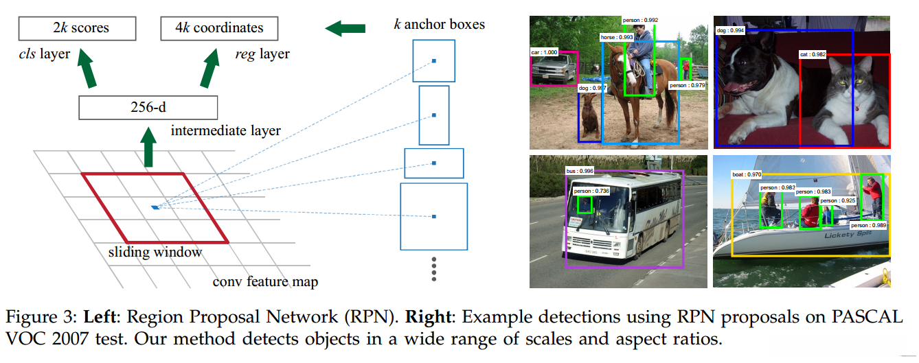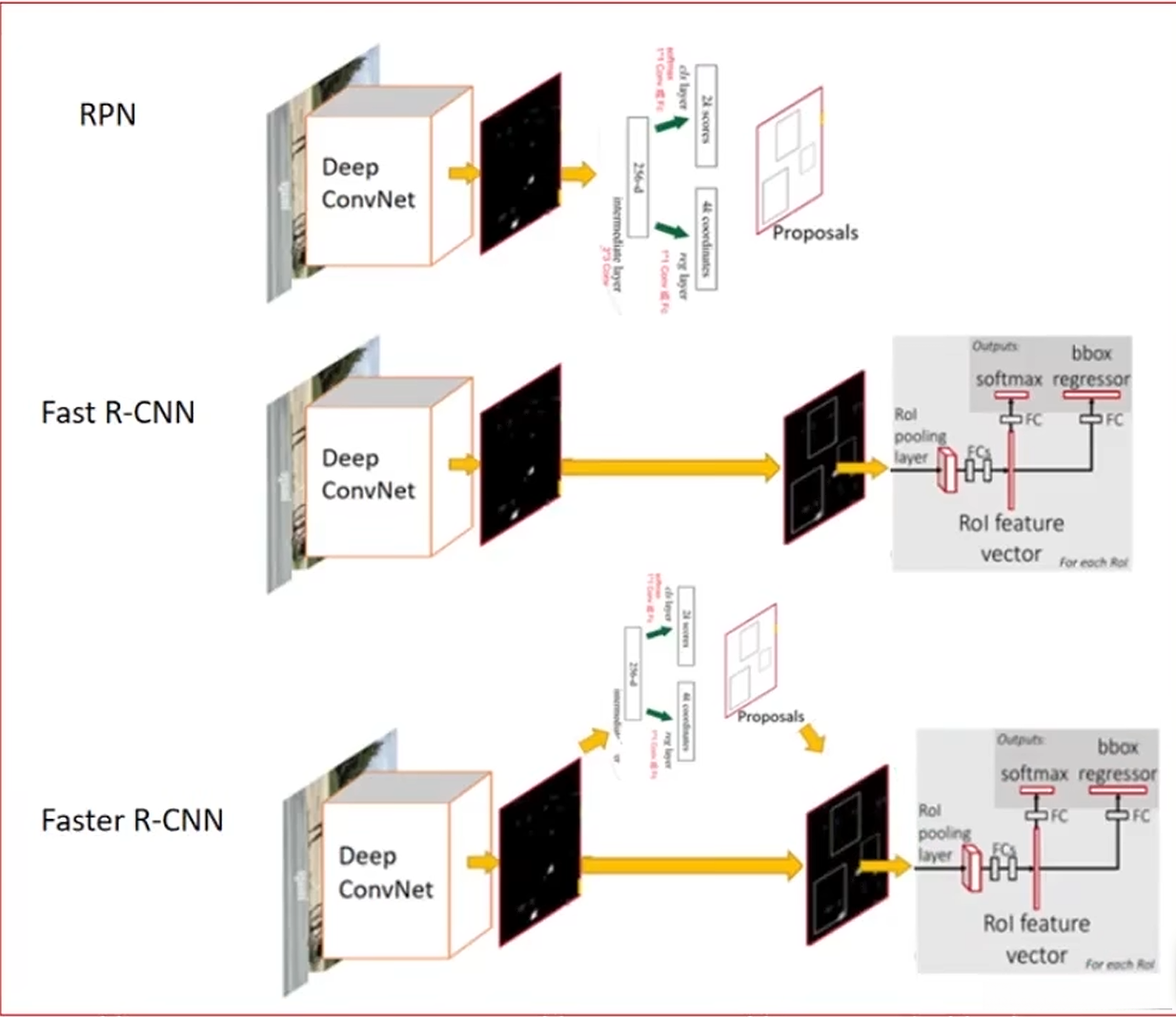这个RPN网络位于该黄箭头旁的位置上,并会让人产生一种错觉:即RPN网络仅涉及这一过程。然而这并不完全准确因为RPN其最根本的作用是利用CNN来实现这一过程。因此它实际上指的是从输入原始图像到生成候选区域的完整流程只不过其中前面的卷积层恰好与Fast R-CNN实现了层上的共享。因此在阅读博客内容时你会看到有些人将RPN简单地理解为卷积操作而另一些人则将其视为一个完整的网络体系两者具体采用哪种形式需根据上下文语境来确定而在本文中作者倾向于将RPN视为一个完整的网络体系