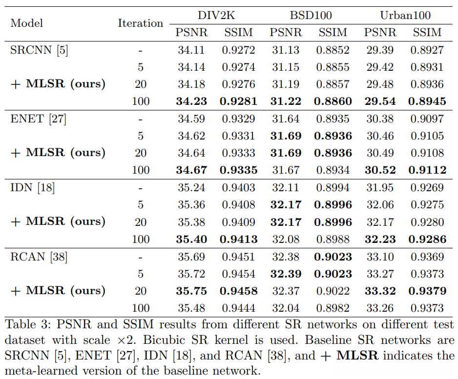 ZSSR 缺点:该算法具有较长的执行时间。该算法不具备利用之前在大训练集上训练获得的模型的能力。