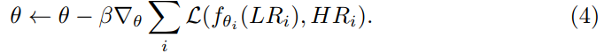 在测试过程中,我们对给定的低分辨率(LR)测试图像优化元学习参数设置,并通过自适应参数重建对应的高分辨率(HR)图像.