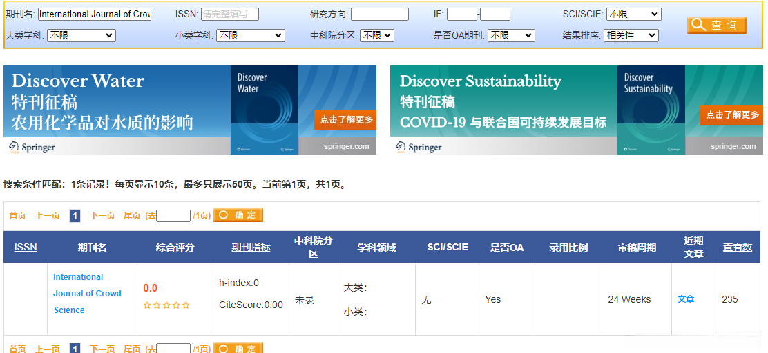 只要在搜索框中输入期刊的全称,就可以搜索到期刊的所有信息了。可以判断是不是SCI期刊。