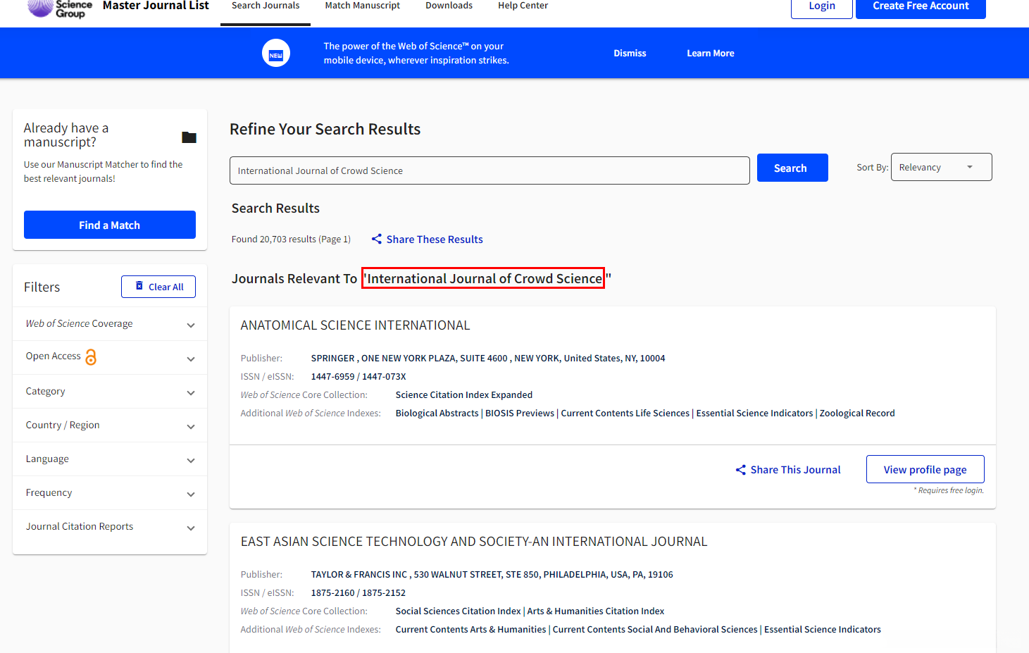Web of Science Master Journal List - WoS MJL by Clarivate
