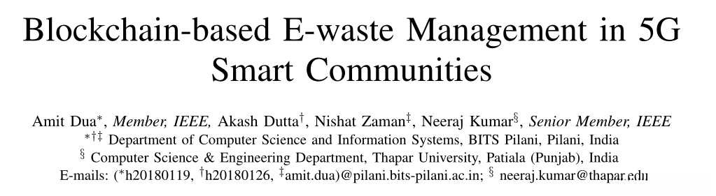 中文题目:5G智能社区中基于区块链的电子垃圾管理