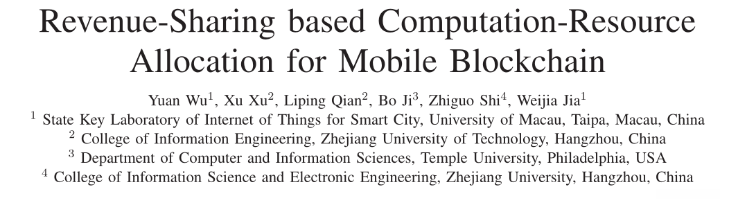 Revenue-Sharing based Computation-Resource Allocation for Mobile Blockchain.