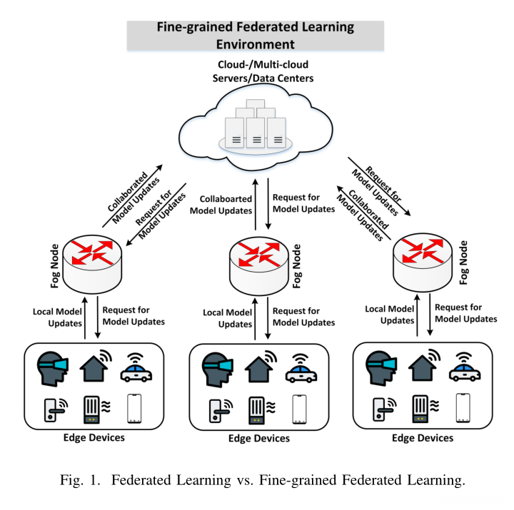 摘要:联邦学习(FL)是一种协作机器学习(ML)技术,通过这种技术,设备可以集体训练和更新共享的ML模型,同时保留其个人数据集。FL系统解决了通信效率、带宽优化和隐私保护等问题 。尽管FL有潜在的好处,但一个跨所有设备的集中式共享ML模型可以生成粗粒度预测 ,这在许多涉及个性化预测服务的应用领域中本质上是不需要的。在本文中,我们提出了一种新的细粒度FL概念,以分散边缘服务器上的共享ML模型。然后,我们提出了移动边缘计算系统中细粒度FL过程的形式化扩展定义。此外,我们定义了细粒度FL系统的核心需求,包括个性化、去中心化、细粒度FL、激励机制、信任、活动监控、异构性和上下文感知、模型同步以及通信和带宽效率 。此外,我们提出了基于区块链的声誉感知 细粒度FL的概念,以确保在移动边缘计算系统中进行可信的协作培训。最后,我们将所提出的方法与最新的相关工作进行了定性比较,并发现了一些有希望的初步结果。