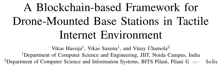 中文题目: 触觉互联网环境中基于区块链的无人机基站框架
