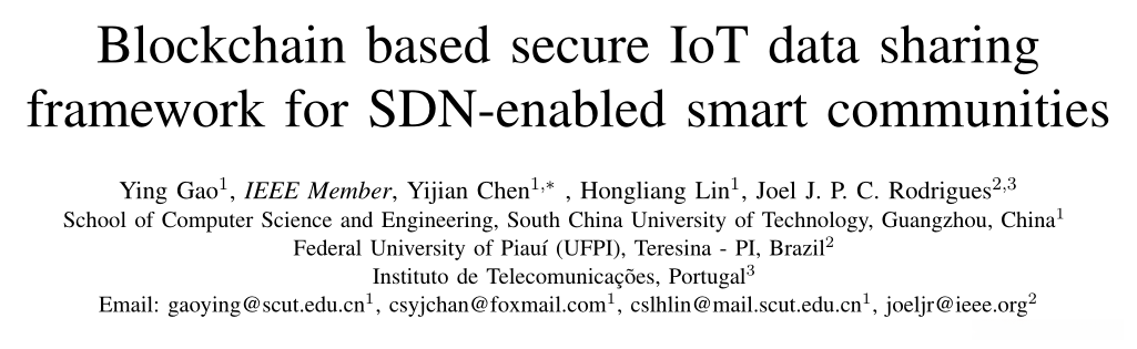 Blockchain based secure IoT data sharing framework for SDN-enabled smart communities.