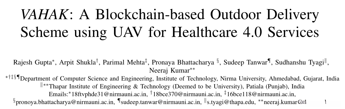 VAHAK:一种基于区块链的户外交付方案,使用UAV提供医疗保健4.0服务