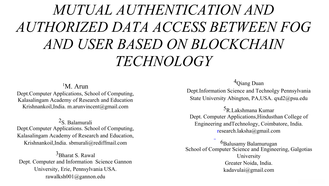 中文题目:基于区块链技术的FOG与用户相互认证和授权数据访问