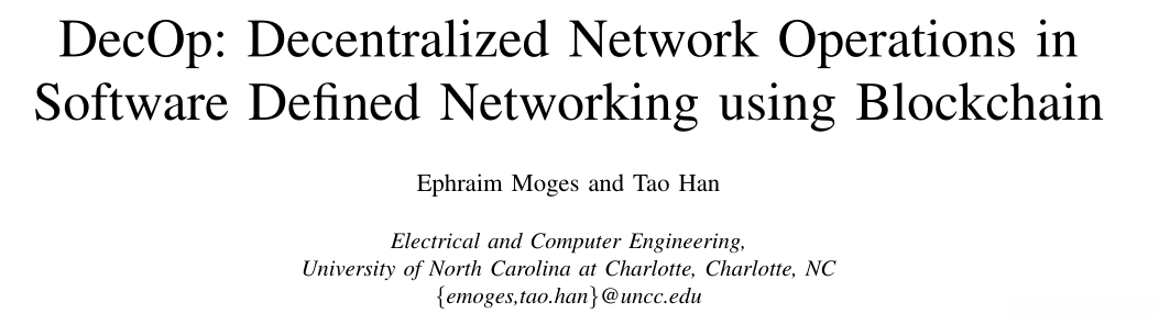 DecOp: Decentralized Network Operations in Software Defined Networking using Blockchain.