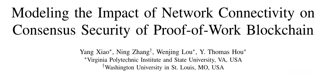 ==Modeling the Impact of Network Connectivity on Consensus Security of Proof-of-Work Blockchain.