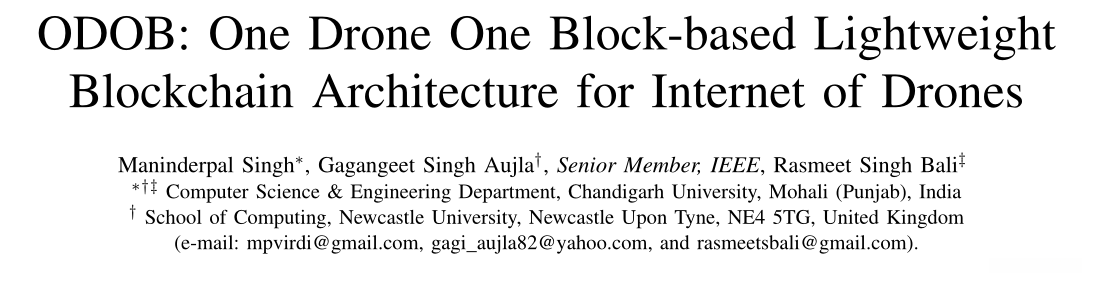 ODOB: One Drone One Block-based Lightweight Blockchain Architecture for Internet of Drones.