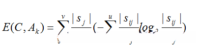 式中,v为Ak的可能取值个数,取值记为a1, a2, …, av;sj为Ak=aj的记录集合,|sj|即为Ak=aj的记录数目;sij为Ak=aj且属于类别ci的记录集合,|sij|即为Ak=aj且属于类别ci的记录数目。