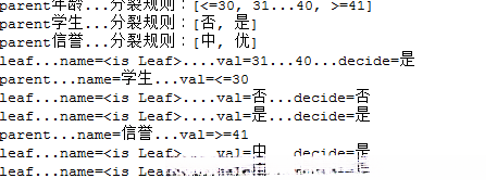System.out.println("parent" + root.getAttriName() + "...分裂规则:"