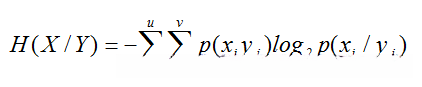 式中,p(xiyj)为X=xi, Y=yj的联合概率;p(xi/yj)为已知Y=yj时,X= xi的条件概率;u、v分别为X、Y的可能取值个数。