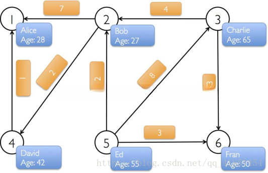 GraphX中有一个重要概念,所有的边都有一个方向,那么图就是有向图,如果忽略边的方向,就是无向图。