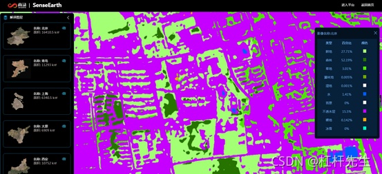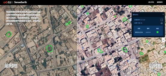 SenseEarth是一款由商汤遥感开发的遥感影像智能解译与效果展示的在线服务平台。通过直观可视化的界面和交互式的操作模式, SenseEarth让用户能够深刻体会到人工智能技术如何赋能于遥感解译工作的魅力。目前系统已集成包括全自动道路提取在内的多种智能化应用场景,并已成为集'建筑变化' '超分' '林地变化' '土地利用' '机场' '港口'等多种应用场景于一体的公共产品,并向公众免费开放使用