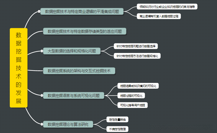 随着数据挖掘技术研究的深入,你会发现还有一些难关需要攻克,具体看图(百度脑图制作):