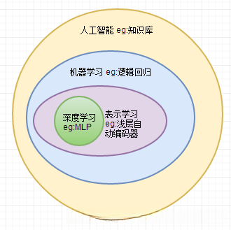 蒙特利尔大学深度学习大神Yoshua Bengio在Deep learning一书中对这些概念做出了如下关系: