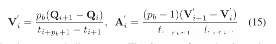 非均匀B样条是一种更为普遍的B样条。与均匀B样条曲线的唯一区别是其每个节点跨度Δtm=tm+1− tm独立于他人。非均匀B样条的一阶导数和二阶导数V?i和A?i可以通过以下公式计算: