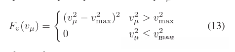 我们惩罚沿轨迹的速度或加速度超过最大允许值vmax和amax,代价类似于等式12。一维速度vμ的惩罚为: