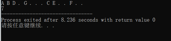 此二叉树的扩展先序遍历序列是:A B D . G . . . C E . . F . .(可直接复制使用)