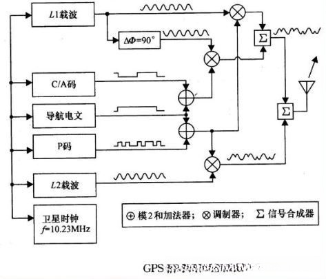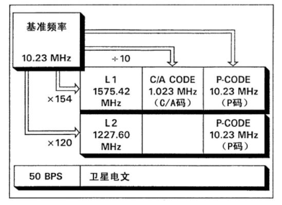 每颗GPS卫星均采用两个L波段频率(即L1和L2),分别发送载波无线电信号。其中,载波L1的频率f₁定为1575.42MHz,