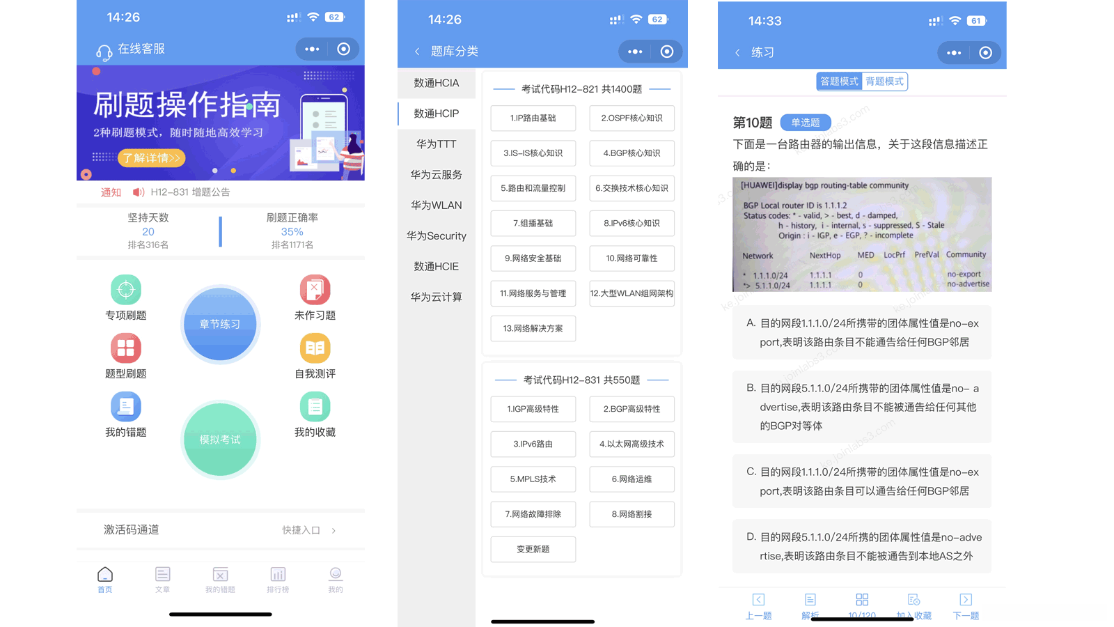 越来越多人报考华为Datacom认证。因为华为认证需要考试费,因此,为了一次通过考试,一定要在考前进行模拟测试,建议多次模拟分数在900分以上再去考试才不至于让考试费打水漂。