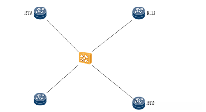 52、如图所示的广播网绪中,OSPF运行在四台路由器上,且在同一区域,同一网段OSPF会自动选举一个DR,多个BDR,从而达到更好的备份效果。( )