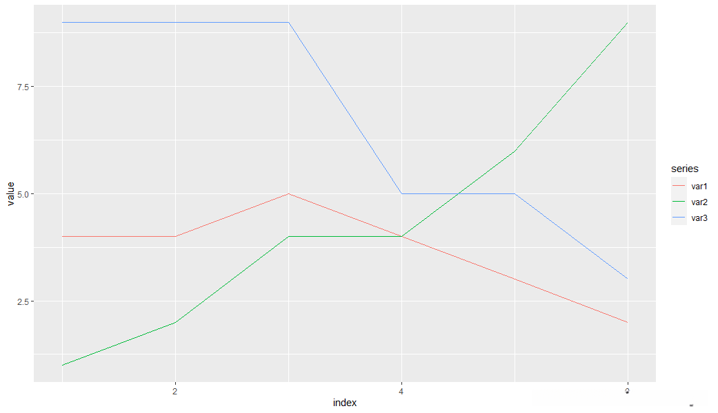 df <- melt(df , id.vars = 'index', variable.name = 'series')
