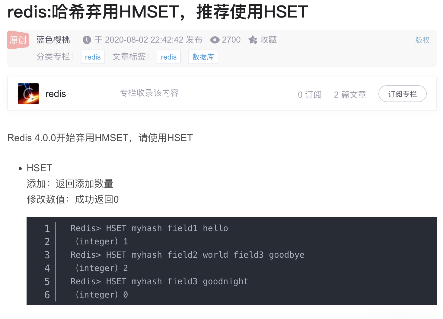 在实例中,我们采用了Redis这一工具,并通过其核心命令hmset, hget完成了数据操作。具体而言,在调用Redis的hmset命令时,在内存哈希表中创建并设置了两对键值对(field, value)。随后通过调用Redis的hget命令,在内存哈希表中获取指定键(field)所对应的值(value)。