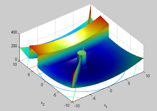 有 landscape 及 const2 = (x12+x22) >=1 , Swarm.GBEST.O = 1 且 Swarm.GBEST.X 的 x12+x22 接近 1,故此优化结果可靠准确