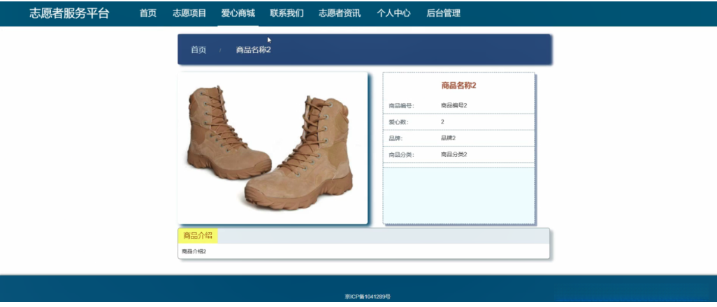 在爱心商城的页面上能够查看商品名称信息商品条目编号图片信息积分值品牌类别信息以及详细的商品介绍等信息如图5-3所示