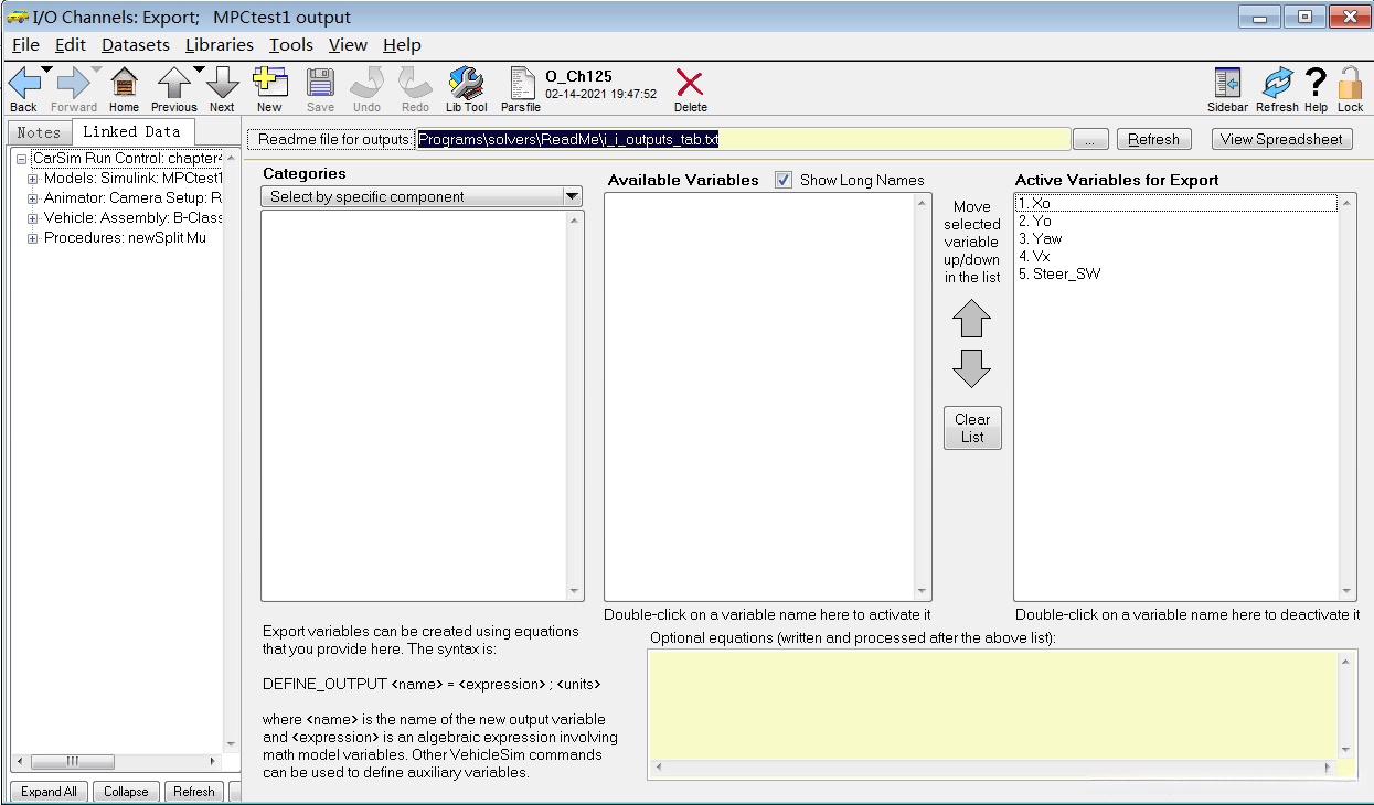 该系统输出包括X坐标、Y坐标、偏航角、质心处的纵向速度和转向盘转角。在CARSIM中,默认采用度(°)作为角度的表示单位。